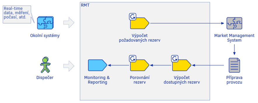 Výpočet rezerv systém provádí vždy na následujících 48 hodin, pro tři geografické lokality a produkty RR20, RM1, RM3, RM8. Výpočet se automaticky opakuje každých pět minut, případně může být iniciován oprávněným uživatelem manuálně z přehledové obrazovky systému, tzv. dashboardu.