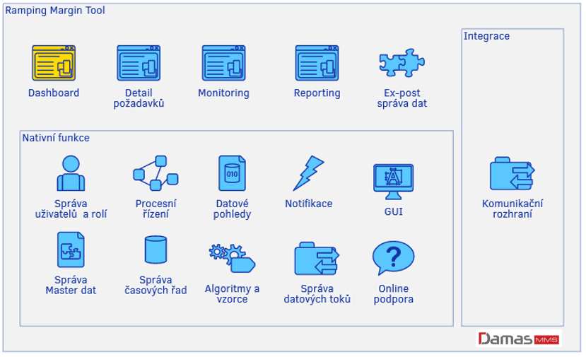 Výši požadované rezervy systém stanovuje na základě velkého množství vstupů. Zjednodušeně lze ale říct, že jde o rozdíl očekávaného nárůstu spotřeby a výroby dostupné pro jeho pokrytí. Jde tedy o množství spotřeby, která by mohla zůstat nepokryta, plus rezervu určenou na základě bezpečnostních předpisů provozu soustavy, jako např. rezerva potřebná pro pokrytí výpadku největšího zdroje v soustavě apod. Opět díky vlastnostem Damas MMS Platformy lze vzorec pro výpočet, včetně potřebných vstupů, uživatelsky upravovat přímo v systému (tzn. vzorec není „natvrdo“ zakódován do systému) bez nutnosti opětovného nasazení, změny jsou tedy aplikované a viditelné ihned.