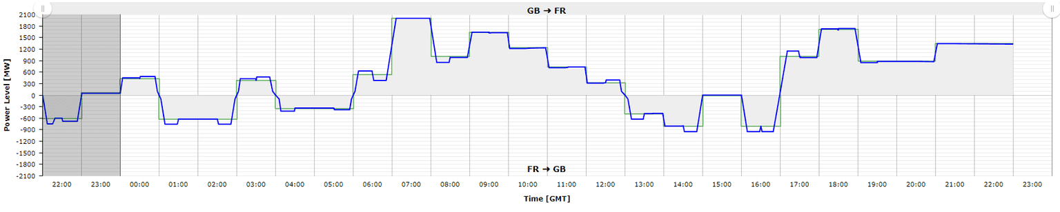 V praxi to znamená, že pokud je na základě nominací požadováno změnit výkon např. z 500 MW na 700 MW ve stejném směru, při použití rampy 100 MW/min bude interkonektor dvě minuty rovnoměrně rampovat na vyšší hodnotu. Takové rampování je však typicky spojeno s provozní odchylkou od plánovaných hodnot, která v daných vypořádacích periodách může vznikat. Někteří operátoři HVDC interkonektorů požadují minimalizaci takových odchylek.