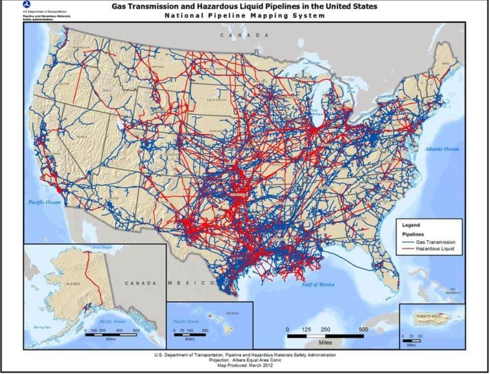 V roce 2016 byla průměrná spotřeba v USA 19,69 milionů barelů ropných produktů denně. V roce 2014 zajišťovalo pohyb surové ropy, ropných produktů a LNG (zkapalněný zemní plyn) přes 320 tisíc kilometrů potrubí.