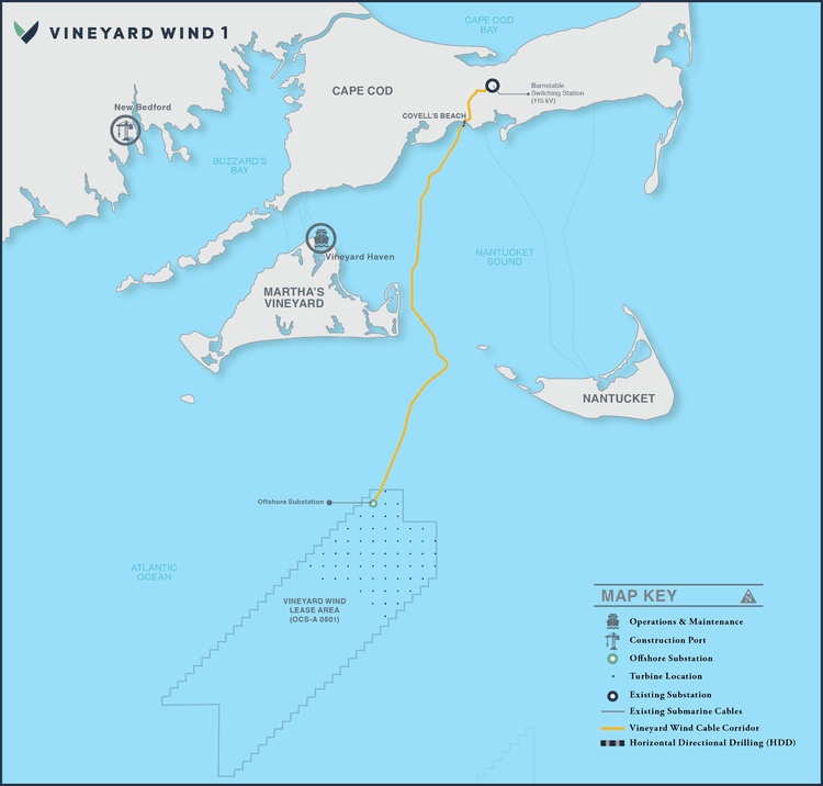 Projekt Vineyard Wind, který se má nacházet 15 mil od pobřeží ostrova Martha’s Vineyard v Massachusetts bude disponovat instalovaným výkonem 800 MW. Podle Vineyard Wind má projekt během prvních 20 let provozu ušetřit zákazníkům 1,4 miliardy dolarů a umožnit snížení emisí uhlíku o více než 1,6 milionu tun ročně. Projekt by měl začít dodávat elektrickou energii do sítě v roce 2023.