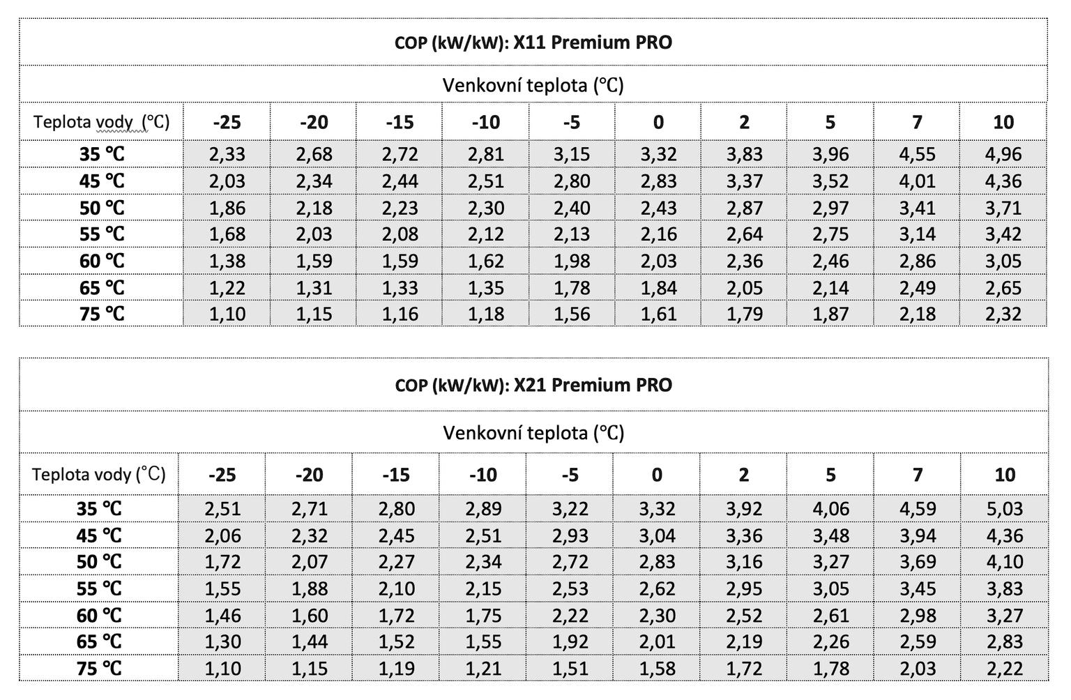 Velké plus za zveřejnění závislosti TF na venkovní teplotě a teplotě topné vody. S tím se výrobci TČ většinou nechlubí.
