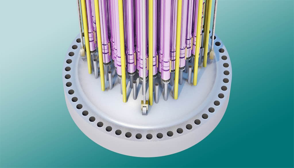 Uzavírací hlava reaktorové nádoby, pohled shora. Zdroj ASN.
