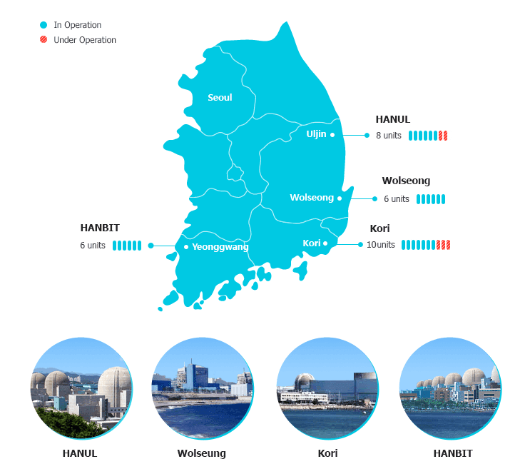 Jižní Korea je pátým světově největším konzumentem jaderné energie a jedna z mála zemí, které své jaderné technologie vyváží. Svou elektrickou spotřebu v současnosti ze 30 % pokrývá díky provozovaným jaderným reaktorů, jejich roční produkce činí 165 TWh (údaje za rok 2015). Společnosti KEPCO nedávno vyhrála zakázku na výstavbu jaderné elektrárny ve Spojených arabských emirátech.