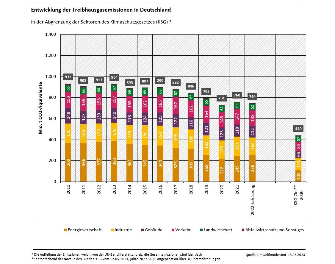 Zpráva Agentury pro životní prostředí (UBA) ze začátku tohoto roku ukázala, že emise skleníkových plynů v Německu v loňském roce poklesly o 2 % oproti roku 2021. Aby se německo dostalo na správnou cestu k dosažení svého klimatického cíle pro rok 2030, potřebovalo by trojnásobek.