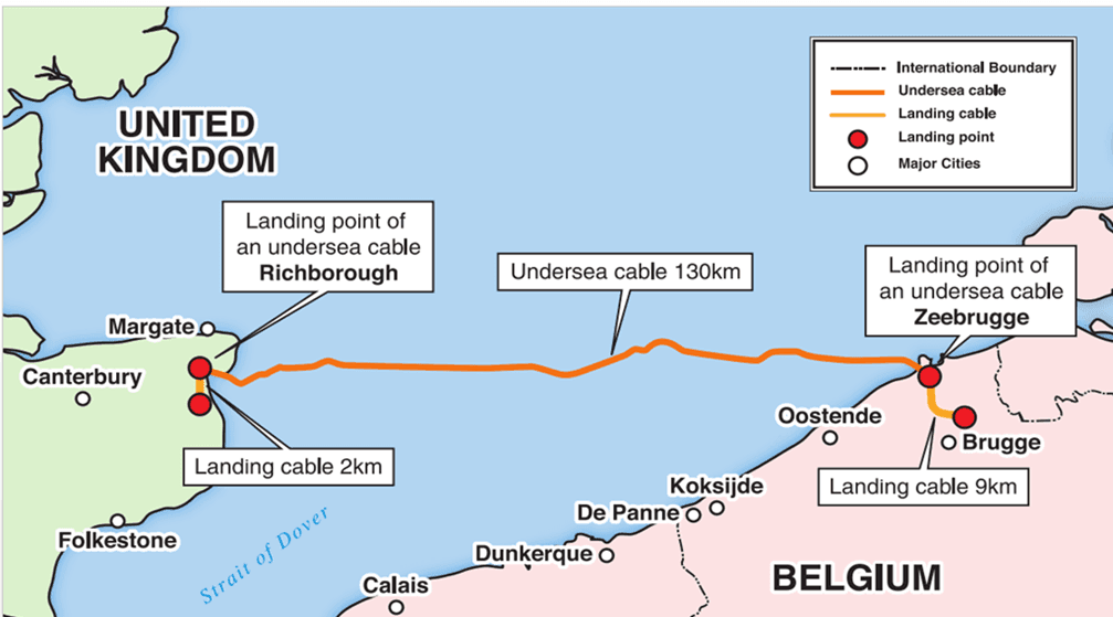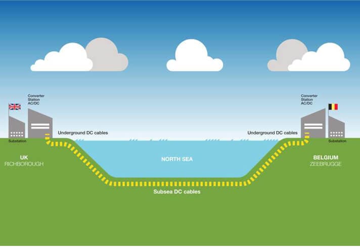 První úsek nového podmořského HVDC kabelu mezi Belgií a Velkou Británií byl umístěn v Anglii v Kentu. Nové vedení zvýší kapacitu propojení Velké Británie s pevninskou Evropou o 20 %.