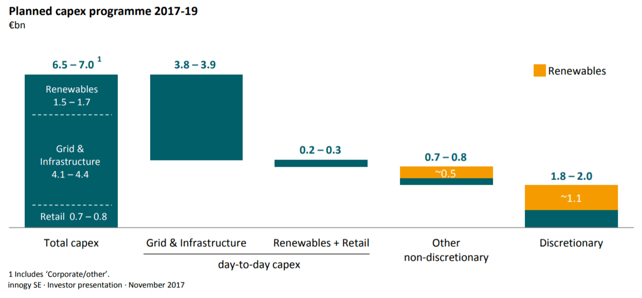 innogy – kapitálové náklady pro období 2017-2019, miliardy euro. Zdroj: innogy – Prezentace pro investory 11/2017