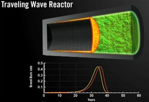 Společnost TerraPower sídlící ve státě Washington vyvíjí unikátní koncept tzv. reaktoru s postupující vlnou. Původní idea byla představena již v 50.letech a je stále rozvíjena na vědecké úrovni. Nikdy však nebyl postaven prototyp nebo experimentální reaktor, což je oproti jiným technologiím značná nevýhoda. Hlavní výhodou tohoto reaktoru je mnohem vyšší využití paliva, než je tomu u klasických lehkovodních reaktorů, které jsou v provozu dnes.