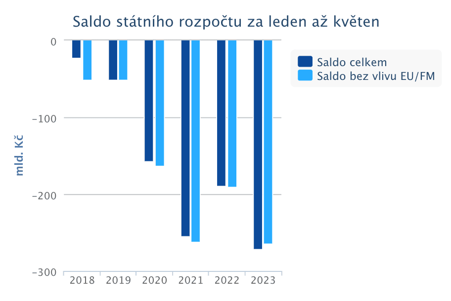 Saldo státního rozpočtu za leden až květen. Zdroj: Ministerstvo Financí České republiky