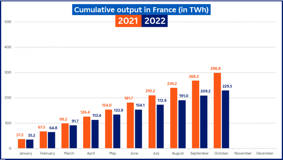 "..Tyto komplikace v letních měsících vyvolaly obavy, že Francie možná nebude letošní zimu schopna vyrábět dostatek elektřiny, aby pomohla evropským sousedům, kteří hledají alternativu k ruskému plynu. .."