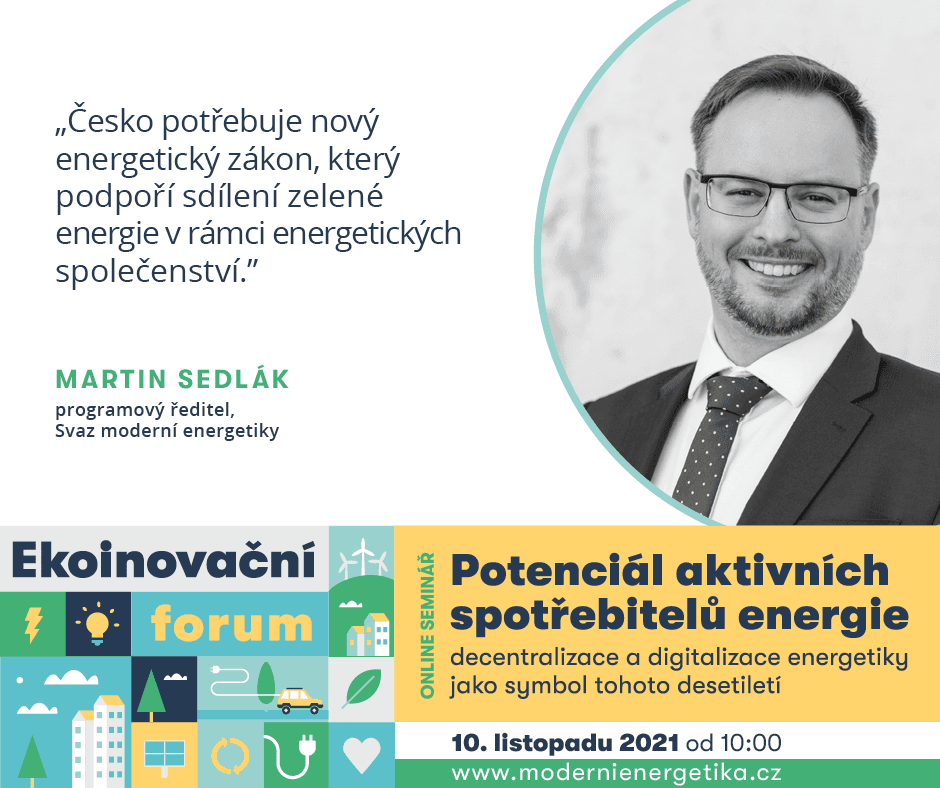 „Česko potřebuje nový energetický zákon, který podpoří sdílení zelené energie v rámci energetických společenství. Vláda jejich vznik může usnadnit odstraněním administrativních bariér. Tato omezení dnes brání v přístupu k vlastní vyrobené energie z obnovitelných zdrojů zejména obyvatelům bytových domů,“ uvedl během konference Martin Sedlák, programový ředitel Svazu moderní energetiky.