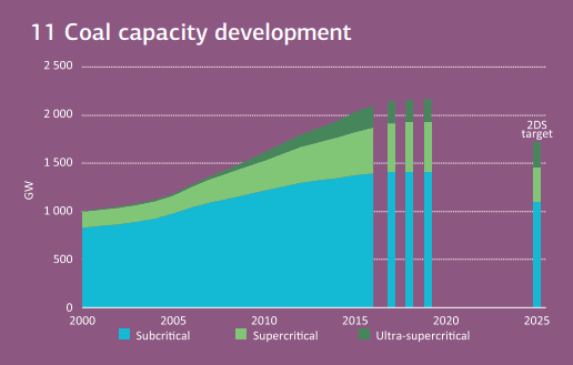 Podle zprávy je nutné, pokud bychom měli dosáhnout cíle stanoveného na Pařížské klimatické konferenci 2015, aby výstavba nových uhelných elektráren skončila a uzavírání starých probíhalo rychleji. Data Světové uhelné asociace ovšem říkají, že globální instalovaný výkon uhelných elektráren během uplynulých 12 měsíců vzrostl o 2 %. Stárnoucí elektrárny v Evropě a v USA jsou totiž nahrazovány vysoce účinnými elektrárnami v Číně a v celé Asii.