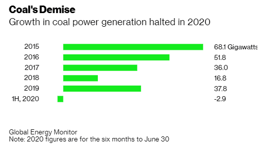 Podle amerického think-tanku Global Energy Monitor globální instalovaný výkon uhelných elektráren v první polovině roku 2020 poklesl. Důvodem je urychlení uzavírání některých elektráren a zpoždění, či pozastavení nových projektů kvůli pandemii koronaviru. Informoval o tom server Bloomberg.