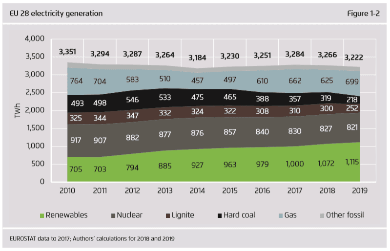Podle dat think tanků Sandbag a Agora Energiewende emise z elektroenergetického sektoru EU v loňském roce klesly o 12 %. Důvodem je prudký pokles výroby elektřiny z uhlí. Uhlí pak bylo částečně nahrazeno zemním plynem a částečně obnovitelnými zdroji. K dosažení cílů pro další roky bude muset být tempo těchto změn minimálně udrženo.