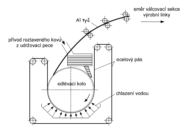 Po výstupu z odlévacího kola je Al profil očištěn a případné výběhy u hran jsou odstraněny než vstoupí do válcovací sekce výrobní linky. Po jejím průběhu je výsledný produkt, kruhový drát, ochlazen a navíjen do těsných nebo volných svitků.