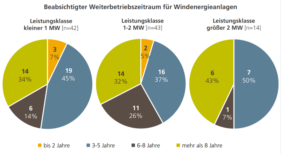 FA Wind provedla průzkum toho, jak provozovatelé větrných elektráren napříč celým Německem s elektrárnami po vypršení podpory naloží. Průzkumu se zúčastnilo 106 aktérů, kteří dohromady provozují okolo pětiny instalovaného výkonu větrných elektráren v Německu. Mezi roky 2021 a 2025 vyprší dotace pro třetinu instalovaného výkonu větrných elektráren v Německu, čtvrtina z tohoto množství byla zahrnuta v průzkumu.