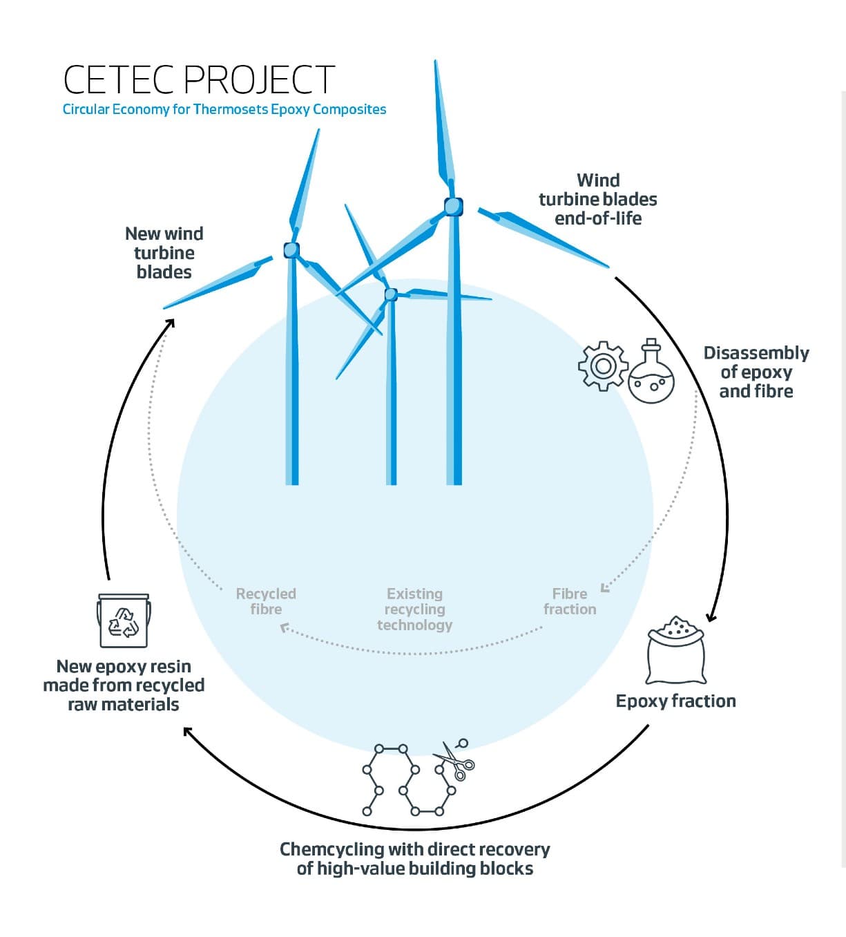 Aby bylo možné tuto novou technologii zavést a podpořit oběhové hospodářství v celém odvětví větrné energie, byla založena nová iniciativa s názvem CETEC (Circular Economy for Thermosets Epoxy Composites). Cílem CETEC je do tří let předložit plně rozpracované řešení připravené k průmyslovému přijetí, založené na komercializaci nové technologie.