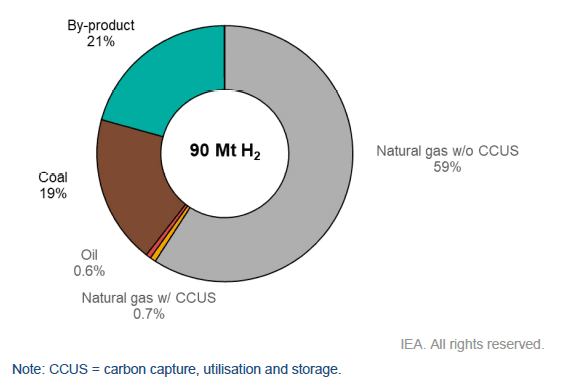 V roce 2020 globální poptávka po vodíku činila 90 Mt. Naprostá většina z tohoto objemu byla vyrobena z fosilních paliv s vypuštěnými emisemi přibližně 900 Mt CO2. Globální instalovaný výkon elektrolyzérů se ovšem postupně zvyšuje. Za posledních pět let se zdvojnásobil na zhruba 300 MW v polovině roku 2021.