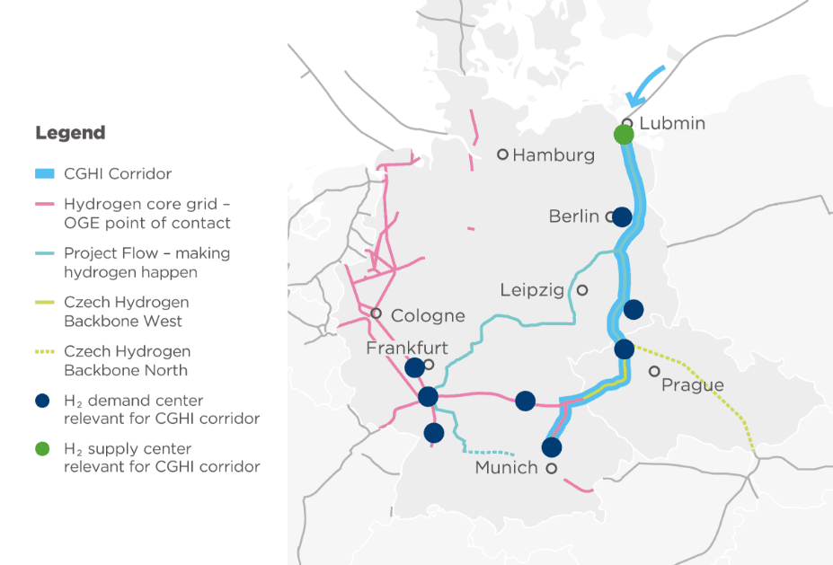 Tím prvním je Česko-německé vodíkové propojení (Czech German Hydrogen Interconnector - CGHI), které umožní přepravu vodíku ze severního Německa, oblasti Severního a Baltského moře a Pobaltí do České republiky a dále do jižní části Německa. Iniciativa byla založena v roce 2022 a první fáze projektu by měla být zprovozněna v roce 2030.