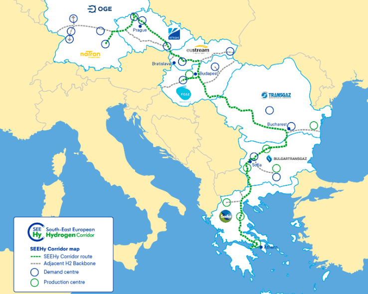 Jihovýchodní evropský vodíkový koridor. Zdroj: SEEHyC