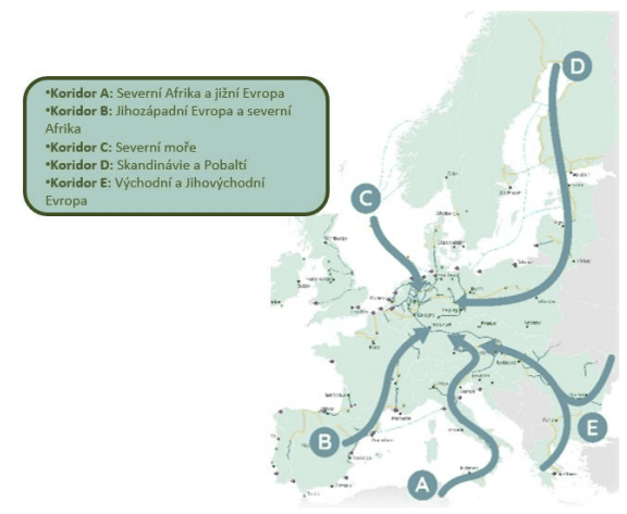 Iniciativa EHB, která byla založena evropskými provozovateli plynárenské infrastruktury, identifikovala vhodné oblasti pro výrobu obnovitelného vodíku pro potřeby EU. Jedná se například o severní Afriku, Pobaltí, Řecko, Turecko, Blízký východ či Ukrajinu. Tyto oblasti byly sdruženy do celkem pěti vodíkových koridorů, z nichž většina vede přes Českou republiku.