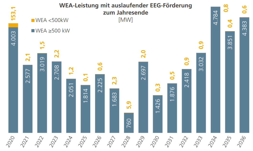 Dle německé Agentury pro větrnou energii na pevnině, FA Wind (Fachagentur Windenergie an Land), skončí na konci letošního roku podpora pro elektrárny o instalovaném výkonu zhruba 4 GW, v dalších letech to bude průměrně 2,4 GW ročně.