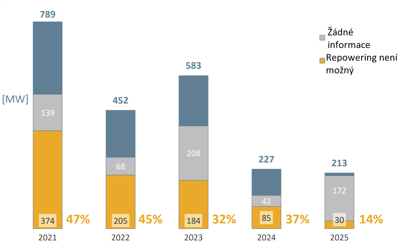 Dle průzkumu FA Wind provedeného v roce 2019 by u téměř poloviny instalovaného výkonu elektráren dotazovaných provozovatelů, kterým má v letech 2021 a 2022 skončit nárok na podporu, nemůže být nahrazeno novými elektrárnami.