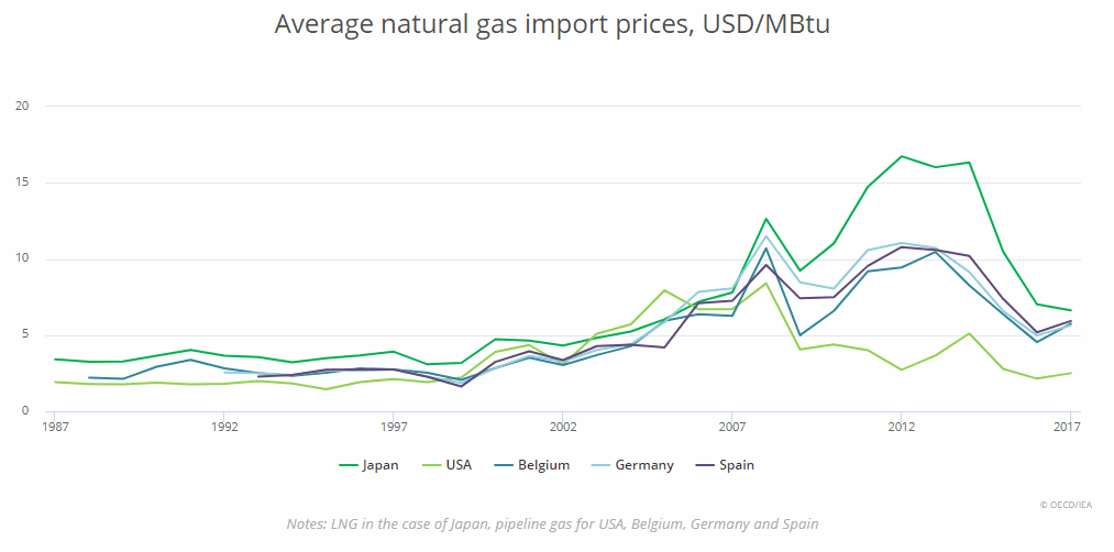 Průměrné ceny importů zemního plynu. Zdroj: OECD/IEA