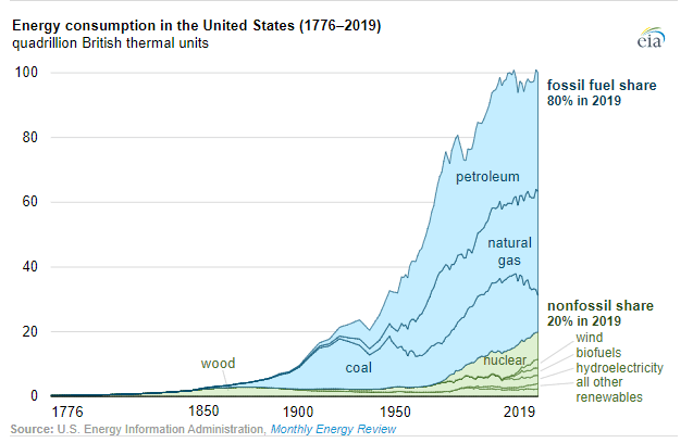 No, já když se dívám na ten graf 1776 -2019 tak bych z toho zatím moc nejásal. Ropa si stále drží svůj velký podíl a co ztrácí uhlí, to zhruba nahrazuje plyn. Takže na fosilní zdroje stále velkých 80 %. Navíc, i když se zatím jádro drží statečně , tak těch 95 běžících reaktorů má náhradu jen ve dvou !! kusech stavěných Vogtle a další výstavba je "ve hvězdách". Takže nevyhnutelně v příštích letech dojde k poklesu podílu také jádra, i když ten podíl bude pomalejší jak u uhlí. Východisko je jediné = maximálně rozšiřovat slunce a vítr a současně na silnice vrhnout miliony elektroaut, nikoli miliony ale desítky milionů a tak snížit podíl ropy. Nabíjení elektroaut ovšem nesmí jít hlavně z plynových elektráren nýbrž ze soláru a větru.