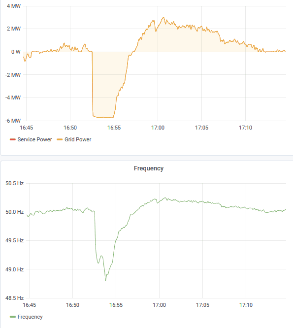 Jak se ale zhoupne celá ostrovní síť takto? Respektive jak dojde k tomu že výpadek 700MW vyhodí dalších 1200MW? No počkáme si asi na report. Napadá mne ještě že tam chvilkově kleslo napětí v místě připojení toho větrného parku.