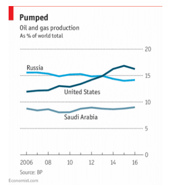 Prvním z nich je břidlicová revoluce USA. Díky ní se ze Spojených států stal největší producent plynu a ropy celkem. Od postupného poklesu produkce od 70. let 20. století USA dnes těží více ropy než kdykoliv předtím. V loňském listopadu to bylo 10 milionů barelů denně.